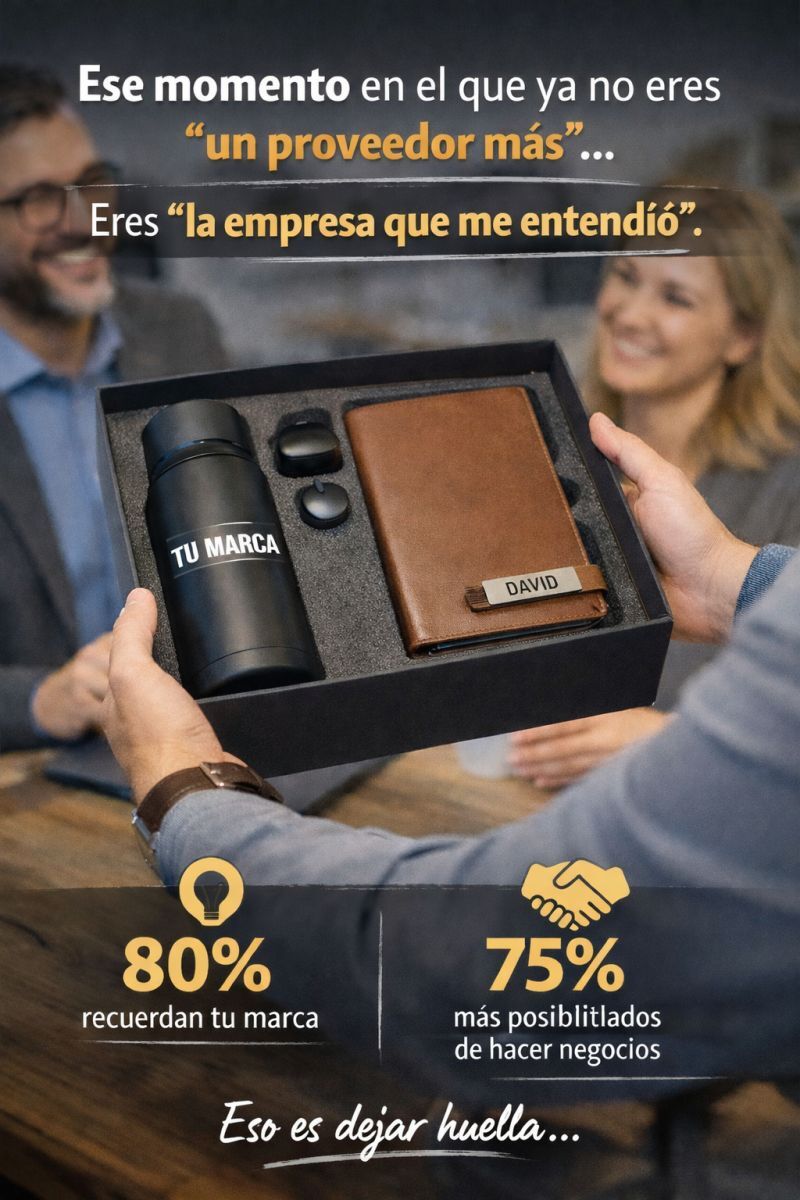 Y según estudios del sector (como los informes de la Promotional Products Association International y la Advertising Specialty Institute), alrededor del 75% de los clientes tienen más probabilidades de comprar o hacer negocio con una empresa que les ha hecho un regalo promocional.